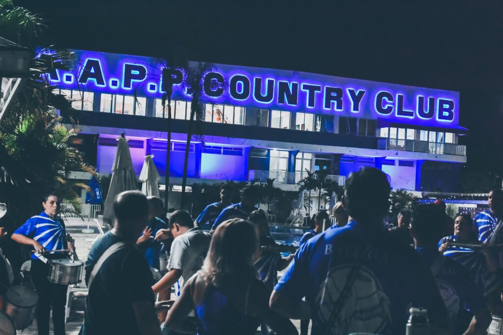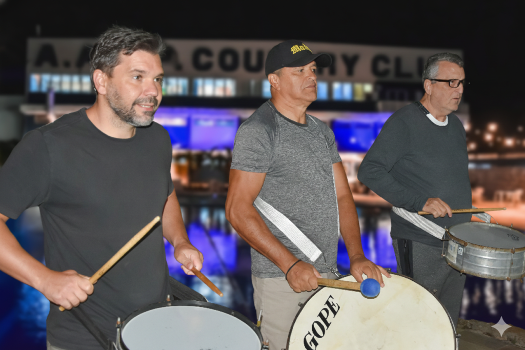A bateria do Bloco Azul e Branco é um dos símbolos históricos do Country, representando identidade, tradição e o compromisso da instituição com a preservação de suas manifestações culturais e festivas.